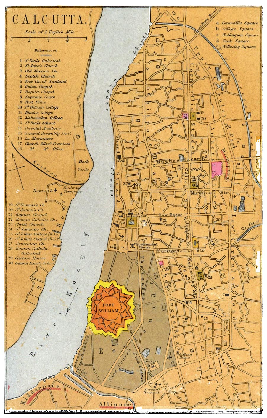 কলিকাতা, চার্চ ও শিক্ষা প্রতিষ্ঠান নির্দেশক সহ – মানচিত্র, ১৮৬২