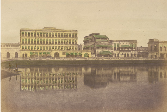 This is a view looking across the Dhurrumtollah Tank towards the buildings along Esplanade Row. The Military Club, later United Services Club, and finally the Bengal Club, is the four storied building on the left. When the Bengal Club was first conceived in the winter of 1826-7, it was christened the Calcutta United Service Club, at a meeting held in the Calcutta Town Hall. It was presided over by Lt Col the Hon J. Finch, who was later to become the first President of the Club. The Club was housed in a building in Esplanade West, erected in 1813. Fund raising was through the then popular method of lottery. This large neo-classical building now houses the Geological Survey of India.
