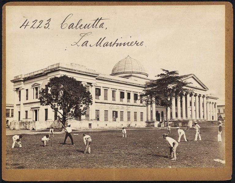 Here is the magnificient building of the La Martinière Boys’ School in Calcutta with view of students playing crickets on its wide play ground. La Martinière Calcutta comprises two separate single-sex schools in Calcutta, established and funded in 1836 in accordance with the will of the French-born soldier of fortune and philanthropist Major General Claude Martin. He is estimated to have accumulated a fortune of about 400,000 rupees. The major portion of his monies and estate were left for founding three institutions, one each in Lucknow and Calcutta and his birthplace Lyon. He was a man who loved not only his own country but also the country of his adoption The schools are located in south Calcutta, with the boy school having it’s main gate in Loudon Street and the girl school having it’s main gate in Rawdon Street. They face each other across Rawdon Street. The main boys school building was completed in 1836 and is notable for its European Classical architecture, with the Round Chapel, ringed by imposing Corinthian pillars, at the heart of it. The Lower Circular Road end of the playing field was planted with seven ashoka trees, known informally as the “seven sisters”. These were uprooted to make way for Atmodya Bhavan built in 1979