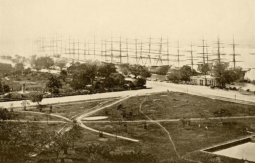 The above view of series of sailing boats on Hooghly riverside near Babu ghaut was captured by an unidentified photographer, date unknown.