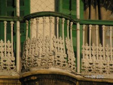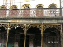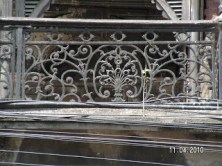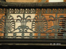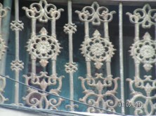 Sebanti Sarkar, who did a fascinating study (2017) on colonial architecture in consultation with celebrated architect Professor Manish Chakrabarti, observed that the elegance of the lacy floral motif fashioned in cast iron aroused a general interest in using ornamental wrought iron to beautify public places, corporate buildings as well as family mansions. Calcutta elites assumed the ‘newer aesthetics of living’. The merchants and, zamindars, munshis and baniyas found it appropriate to adopt the new hallmark and style of power. Gradually innovative patterns evolved admixing different European with traditional Bengali motifs. Local variety of cast iron grilles, bells and whistles, sometimes twined with religious icons or family insignia became affordable and popular by early 1900s. [See: Sarkar]