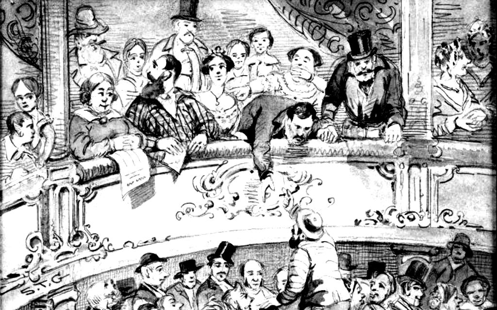 ENGLISH Theatre AUDIENCE SAME EVERYWHERE IN MID-19th CENTURY; DEPICTED BY ST GILL, Melbourne, 1853. COURTESY: STATE LIB. VICTORIA
